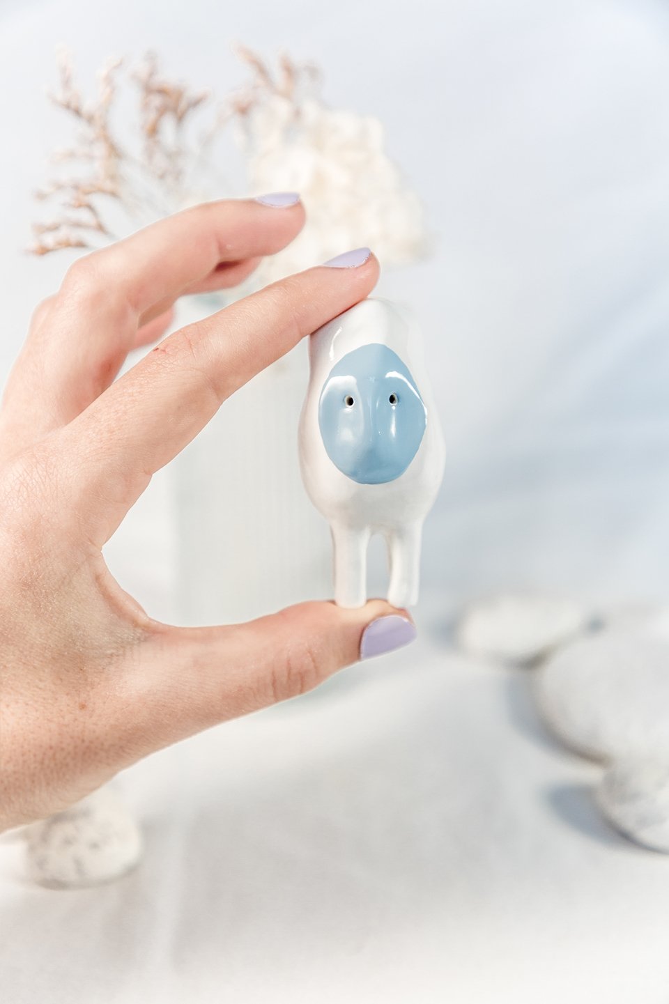 Chaque œuvre est entièrement réalisée à la main en argile, puis peinte délicatement avec une peinture spéciale céramique à l'aspect vernis.